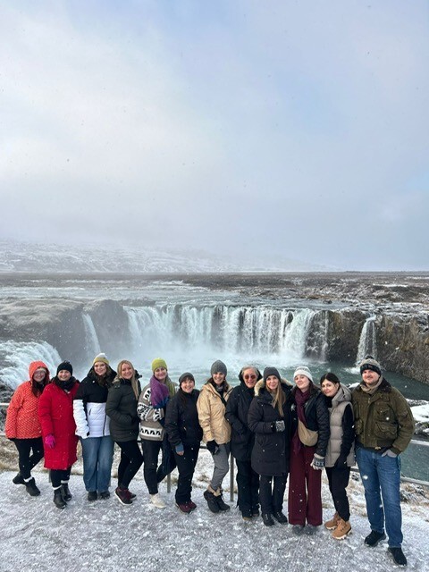 Akureyri offers a different side of Icelandic beauty: a mix of mountains, ocean views, and lush valleys shaped by volcanic history. It is in this area where Goðafoss, one of Iceland’s most stunning waterfalls is located. Its sweeping horseshoe shape and turquoise water make it a truly unforgettable sight. The Mývatn region, an otherworldly landscape of craters, lava formations, hot springs, and geothermal fields is what you would imagine walking on the moon would look like. Experiencing this area on four-wheelers (ATVs) added excitement and immersion, allowing us to travel across rugged volcanic terrain and feel directly connected to the power of Iceland’s natural forces.