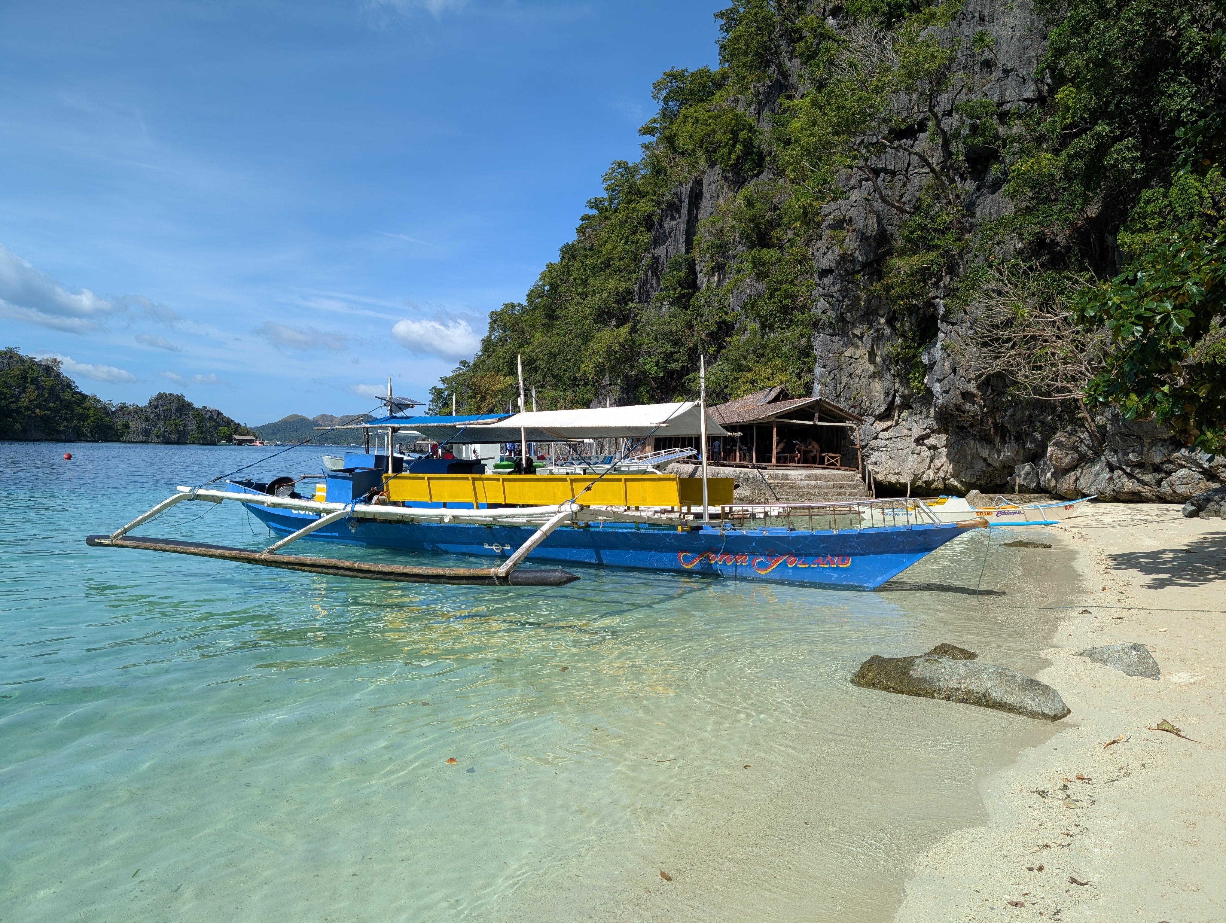 Although we missed them, other popular island-hopping spots in Coron include some truly unique natural wonders. Twin Lagoon, for example, features two connected lagoons: a narrow opening in the rock allows passage at low tide, while a wooden ladder is used when the tide is high, while Barracuda Lake, nestled within a volcanic crater, is most famous for its sudden temperature shifts and impressive underwater karst formations. For snorkelers and freedivers, Siete Pecados Marine Park is a top spot, offering abundant wildlife and vibrant corals. Finally, there's Malcapuya Island, often called "Mini Boracay" due to its long stretch of powdery white-sand beach and pristine, crystal-clear turquoise waters, perfect for beach photography, swimming and relaxing.
