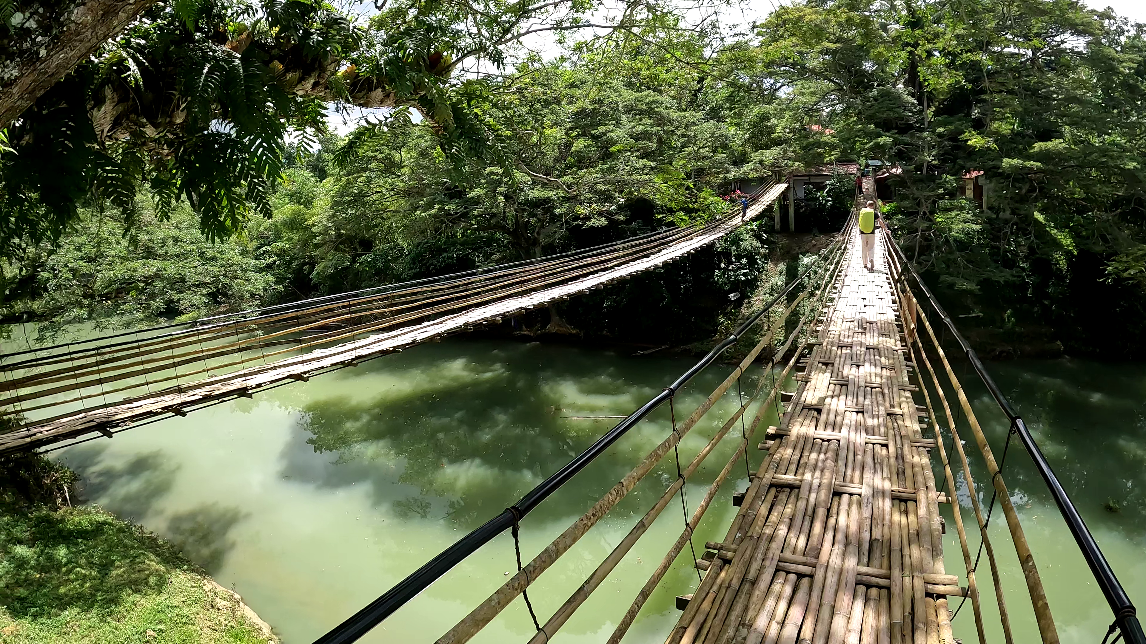We then visited Sevilla Twin Hanging Bridge, a popular adventure stop known for its panoramic views of the Sipatan river below and the surrounding lush greenery. It consists of two parallel bridges (one for crossing over and the other one for returning) suspended some 20 meters above the water and spanning a length of 40 meters. Despite the fact the original rope suspension has been replaced with modern steel cables for safety, the bridge decks (made of woven bamboo slats) creak and sway as you walk, providing a thrilling (scary?) experience, so probably not for the faint of heart!