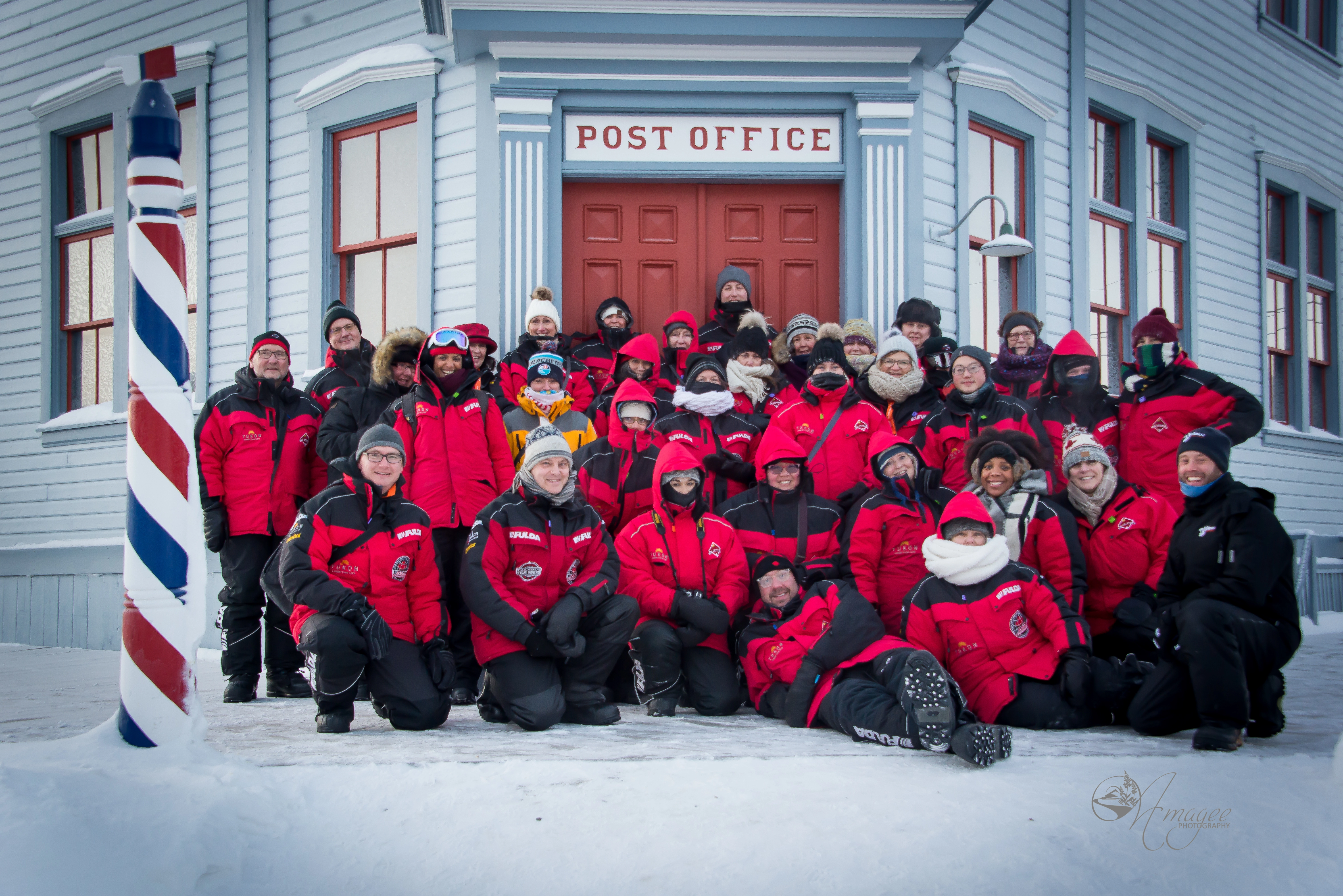 The flight was about 90 minutes and the temperature in Dawson City was about -41C compared to Whitehorse being about -24C. To say that you could certainly feel the difference is an understatement. We checked in to Downtown Hotel and all geared up joined a historical walking tour of heritage buildings from the Klondike Gold Rush era hosted by Parks Canada. We went to see an old theatre where we enjoyed the performance of two violinists (no heating inside – performance was short but amazing), as well as a bank and the post office. We learned about the Yukon gold rush and the famous Percy de Wolfe, a dogsled mailman who would pick up and drop off the mail in Alaska by dogsled. His route took four days for each trip and we were told he never lost a single piece of mail. We were given a postcard we could mail to anywhere in the world that would be carried on dogsled as part of the Dawson annual Memorial Mail Race that takes place in March every year. I have sent one to my family and can confirm that it arrived! We also made a visit to Danoja Zho Cultural Centre where we watched a short documentary about Tr’ondek Hwech’in (local native tribe).