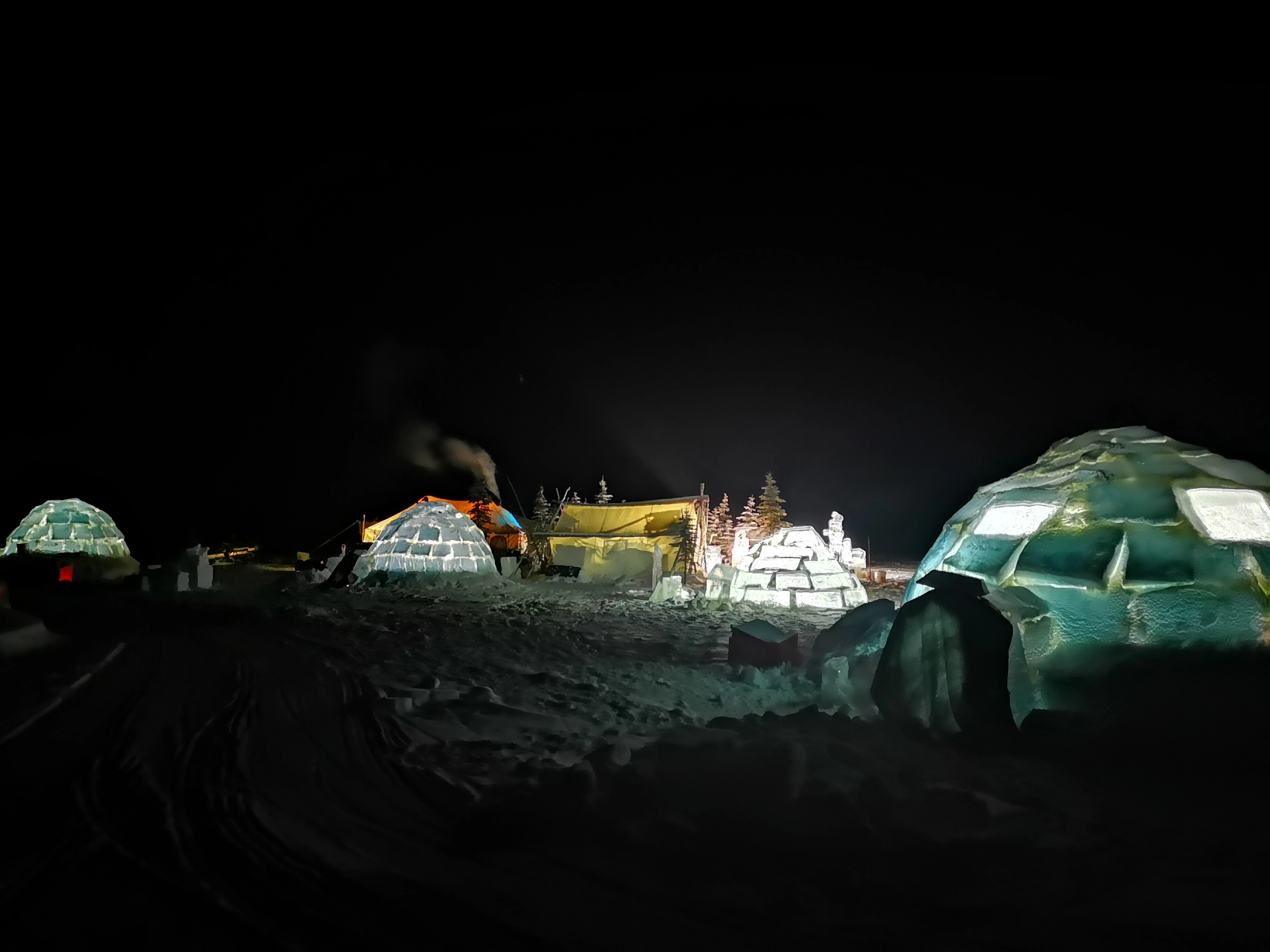 Next morning we packed, had breakfast and jumped on a flight to Inuvik via Whitehorse. We joined the local sunrise festival with activities where we had an opportunity to taste a variety of local food. Kids were skating on a large ice rink or sliding down the ice slide while others were enjoying the food or admiring ice sculptures.